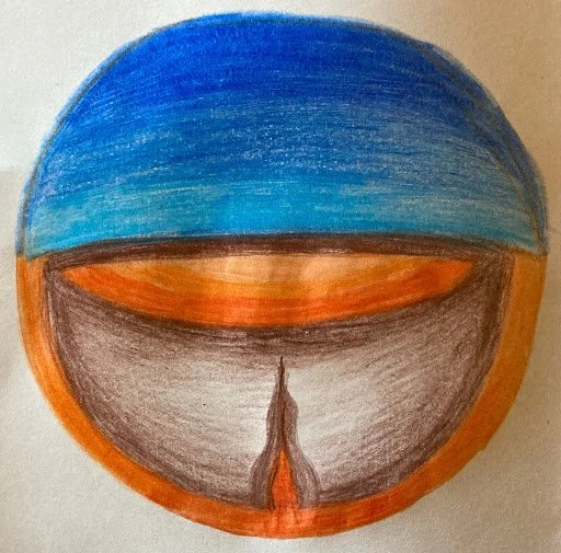 During my meditation/movement journey with the throat chakra the word Purpose was very loud. Expressing Purpose. In reference to my life's purpose, my meditation guide Jessaiah asked me the question, “how do you see yourself in 10 years?” I immediately reflected on the Stage 4 mandala I made during Part I. My Stage 4 mandala was me at the age of 6 in Sicily. My greatest joy in my entire life was my childhood in Sicily. I felt alive, free, wild, and completely right. The throat mandala I made is me, 10 years from now at the age of 60 in the mediterranean living my purpose. It is me sitting in harmony with doors of creativity and abundance surrounding me with the Pizzica Spider Dance in my heart. I will be dancing and drumming and teaching. The great sun above me is a honeycomb eye shaped hive where the honey bee, the symbol of the ancient priestesses of the goddesses of the Mediterranean, celebrate the mysteries of life, death, and rebirth. I will return back to the hive of my ancestors.
