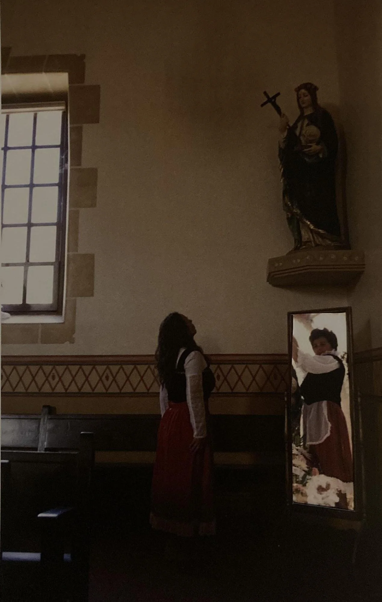 The second series is taken in our family church. I am dressed in my mother’s hand-sewn Tarantella costume that she wore in the 1970’s and 80’s during the Festa di Santa Roslia. Photographs by Michelle Robertson
